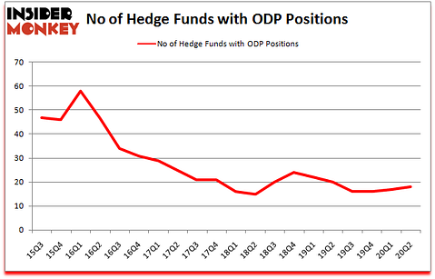 The ODP Corporation (NASDAQ:ODP) has seen an increase in hedge fund sentiment lately. Office Depot Inc (NYSE:ODP) was in 18 hedge funds’ portfolios at the end of the second quarter of 2020. The all time high for this statistics is 58. Our calculations also showed that ODP isn’t among the 30 most popular stocks among hedge funds (click for Q2 rankings and see the video for a quick look at the top 5 stocks).