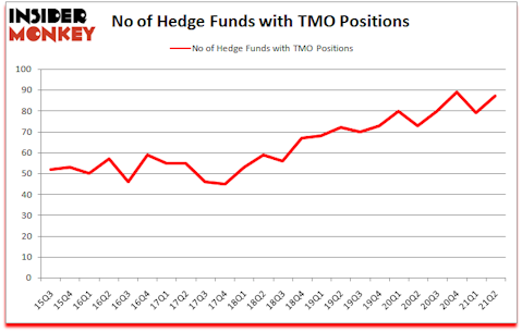 Thermo Fisher Scientific Inc. (NYSE:TMO) shareholders have witnessed an increase in hedge fund sentiment in recent months. Thermo Fisher Scientific Inc. (NYSE:TMO) was in 87 hedge funds’ portfolios at the end of the second quarter of 2021. The all time high for this statistic is 89. Our calculations also showed that TMO ranked 29th among the 30 most popular stocks among hedge funds (click for Q2 rankings).