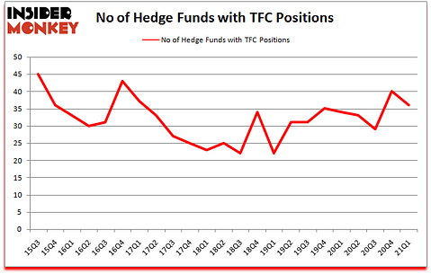 Truist Financial Corporation (NYSE:TFC) has seen a decrease in support from the world’s most elite money managers lately. Truist Financial Corporation (NYSE:TFC) was in 36 hedge funds’ portfolios at the end of March. The all time high for this statistic is 45. Our calculations also showed that TFC isn’t among the 30 most popular stocks among hedge funds (click for Q1 rankings).
