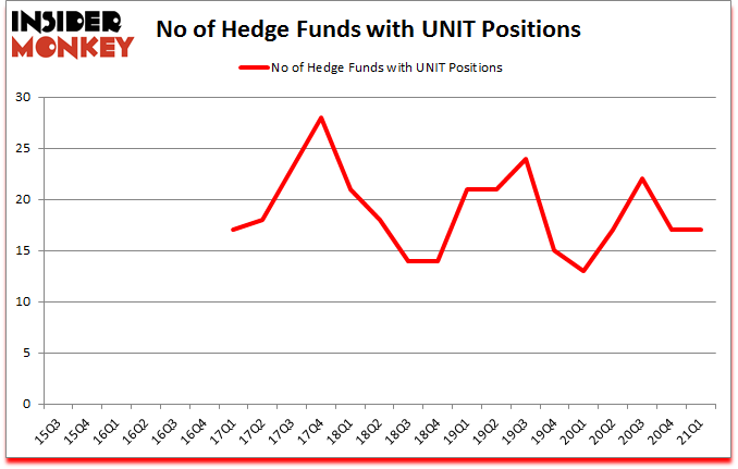 At first quarter’s end, a total of 17 of the hedge funds tracked by Insider Monkey held long positions in this stock, a change of 0% from one quarter earlier. Below, you can check out the change in hedge fund sentiment towards UNIT over the last 23 quarters. So, let’s examine which hedge funds were among the top holders of the stock and which hedge funds were making big moves.
