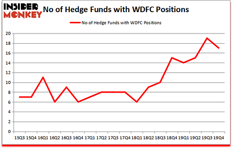 At Q4’s end, a total of 17 of the hedge funds tracked by Insider Monkey held long positions in this stock, a change of -11% from the third quarter of 2019. The graph below displays the number of hedge funds with bullish position in WDFC over the last 18 quarters. With hedgies’ sentiment swirling, there exists an “upper tier” of notable hedge fund managers who were increasing their holdings significantly (or already accumulated large positions).