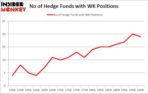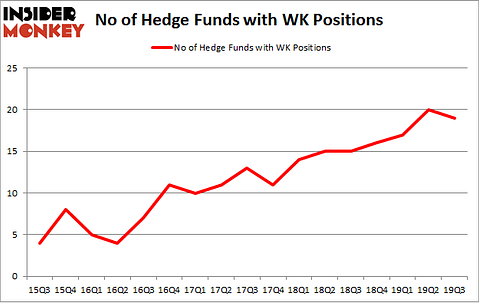 At the end of the third quarter, a total of 19 of the hedge funds tracked by Insider Monkey were bullish on this stock, a change of -5% from the second quarter of 2019. By comparison, 15 hedge funds held shares or bullish call options in WK a year ago. With hedgies’ capital changing hands, there exists a few key hedge fund managers who were boosting their stakes considerably (or already accumulated large positions).