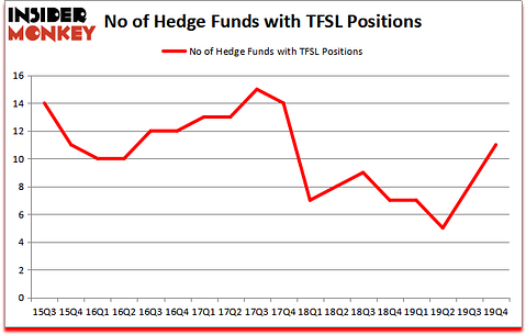 At the end of the fourth quarter, a total of 11 of the hedge funds tracked by Insider Monkey held long positions in this stock, a change of 38% from the previous quarter. The graph below displays the number of hedge funds with bullish position in TFSL over the last 18 quarters. With hedgies’ capital changing hands, there exists an “upper tier” of key hedge fund managers who were upping their holdings significantly (or already accumulated large positions).