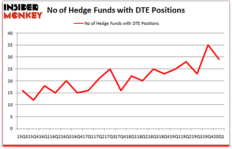 Insider Monkey has processed numerous 13F filings of hedge funds and successful value investors to create an extensive database of hedge fund holdings. The 13F filings show the hedge funds’ and successful investors’ positions as of the end of the first quarter. You can find articles about an individual hedge fund’s trades on numerous financial news websites. However, in this article we will take a look at their collective moves over the last 4.5 years and analyze what the smart money thinks of DTE Energy Company (NYSE:DTE) based on that data.