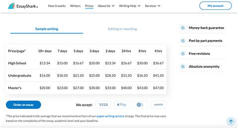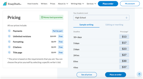 – Part by part payments. If you are a student who always lacks money all the time, this is good news for you. When you order a paper with EssayShark, you can pay for it in installments, not the whole amount at a time.