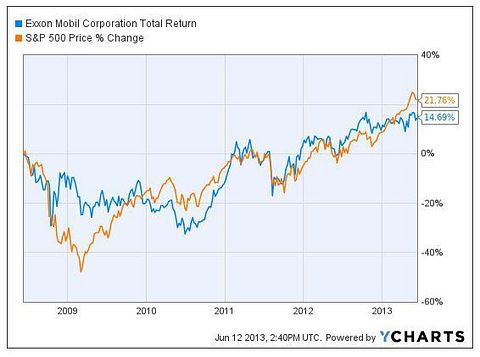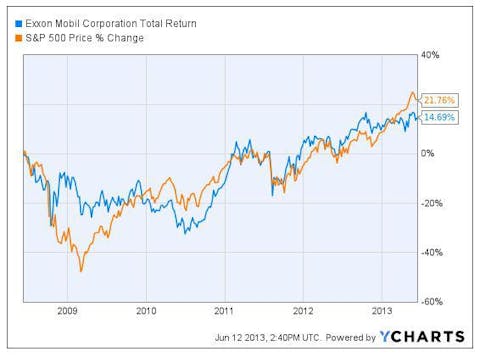 Note how the stock did not bottom out with the Dow Jones in 2009. For investors looking to capitalize on every investment, the company offers a dividend yield of 2.7%. With a beta of just 0.48, Exxon Mobil Corporation (NYSE:XOM) is about 50% less volatile than the market. If traders get crazed, a position with Exxon Mobil Corporation (NYSE:XOM) won’t be along for the ride.