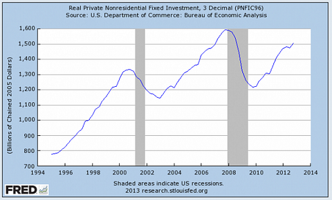 Sure GDP contracted by 0.1%, but that was because government defense outlays declined at their fastest rate since 1972. This appears to be the smaller government that a certain party has been begging for and it came from the industry that the other party demanded. We should all rejoice, right? I don’t believe this drop in defense spending is good, but that is a different argument. The main highlight to the GDP report was the underlying strength everywhere else. Consumer spending was strong, investment was strong, and housing was exceptional. Real private nonresidential fixed investment, a proxy for capex surged 8.4% in the fourth quarter. Anyone looking at the chart below should find solace in the direction of capital spending and what it means for the economy.