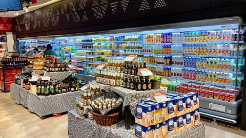 A shopper browsing through a discount retailers merchandise aisle filled with a wide variety of items.