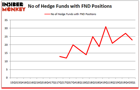 At the end of the first quarter, a total of 23 of the hedge funds tracked by Insider Monkey were bullish on this stock, a change of -15% from the previous quarter. On the other hand, there were a total of 31 hedge funds with a bullish position in FND a year ago. With hedgies’ capital changing hands, there exists a select group of key hedge fund managers who were adding to their holdings substantially (or already accumulated large positions).