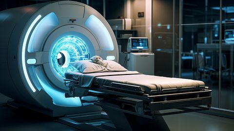 An MRI scanner being used to diagnose primary mitochondrial myopathies in a clinical setting.