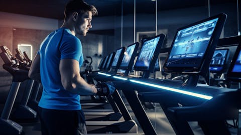 A person in a fitness studio, demonstrating the latest workout routine powered by the company.