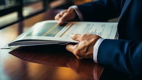 A close-up of an investor making a transaction, with a financial graph reflecting the market trend.