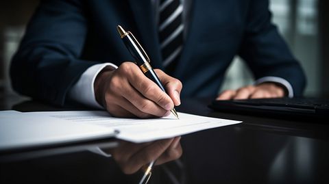 A small business owner confidently signing a contract, ready to secure their business with the right insurance.