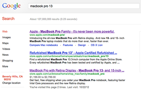 Apple Inc (NASDAQ:AAPL) is set to begin its much-anticipated new product today at 1:00 pm EST (event invite pictured left), but we may have gotten a sneak peak courtesy of Google Inc (NASDAQ:GOOG). As Fast Company’s Noah Robischon originally tweeted, marketing terminology about a new 13-inch MacBook Pro with Retina Display has been showing up on Google Search’s preview function before the text itself is actually online. Now, we saw a little bit of this spoilage with Apple Inc (NASDAQ:AAPL)’s iPhone 5 release, and its likely nothing nefarious on Google Inc (NASDAQ:GOOG)’s part, but its intriguing nonetheless.