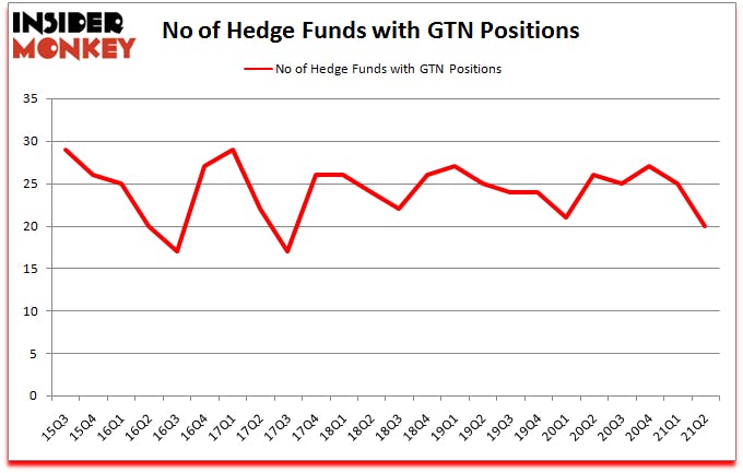 At the end of the second quarter, a total of 20 of the hedge funds tracked by Insider Monkey were long this stock, a change of -20% from one quarter earlier. The graph below displays the number of hedge funds with bullish position in GTN over the last 24 quarters. So, let’s see which hedge funds were among the top holders of the stock and which hedge funds were making big moves.