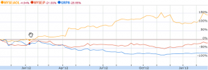 In the last few years, the investors of Groupon Inc (NASDAQ:GRPN)Pandora Media Inc (NYSE:P) and AOL, Inc. (NYSE:AOL) have seen shifting fortunes. As the chart below shows, the stock prices of Groupon Inc (NASDAQ:GRPN) and Pandora have declined significantly. The stock price of Groupon Inc (NASDAQ:GRPN) has declined by approximately 77% in the last couple of years. This decline has been due to the company’s inability to convert sales growth into profit growth. It has even been called a Ponzi scheme by investors, and serious concerns still remain on the ability of its business model to create shareholder wealth. AOL is a very different story; since the company has gone public it has taken a smart and focused approach to generating profits. Unlike Pandora Media Inc (NYSE:P) and Groupon Inc (NASDAQ:GRPN), AOL, Inc. (NYSE:AOL) stock price has skyrocketed with a return of 82% in the last two years.