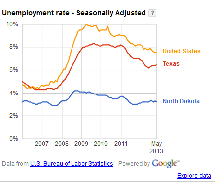 We find similar stories throughout the U.S., as economic activity in the country is higher and unemployment lower in areas, such as the Bakken of North Dakota or the Eagle Ford shale of Texas, where fracking is being employed to tap our vast oil and gas reserves. Just look at North Dakota, which has one of the lowest unemployment rates in the nation: