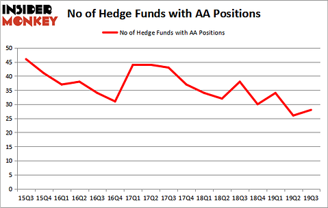 Alcoa Corporation (NYSE:AA) was in 28 hedge funds’ portfolios at the end of the third quarter of 2019. AA shareholders have witnessed an increase in activity from the world’s largest hedge funds of late. There were 26 hedge funds in our database with AA positions at the end of the previous quarter. Our calculations also showed that AA isn’t among the 30 most popular stocks among hedge funds (click for Q3 rankings and see the video at the end of this article for Q2 rankings).