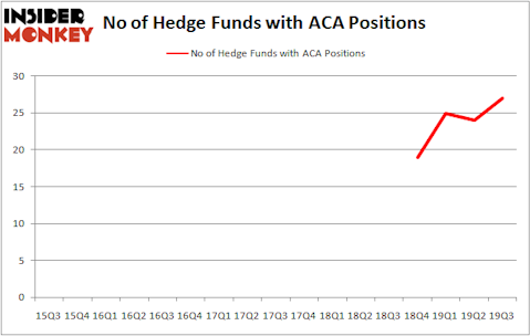 Heading into the fourth quarter of 2019, a total of 27 of the hedge funds tracked by Insider Monkey were long this stock, a change of 13% from one quarter earlier. Below, you can check out the change in hedge fund sentiment towards ACA over the last 17 quarters. So, let’s review which hedge funds were among the top holders of the stock and which hedge funds were making big moves.