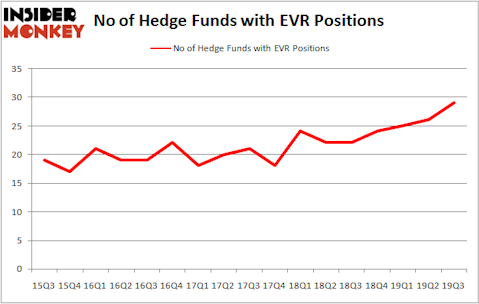 At the end of the third quarter, a total of 29 of the hedge funds tracked by Insider Monkey were bullish on this stock, a change of 12% from one quarter earlier. By comparison, 22 hedge funds held shares or bullish call options in EVR a year ago. So, let’s review which hedge funds were among the top holders of the stock and which hedge funds were making big moves.