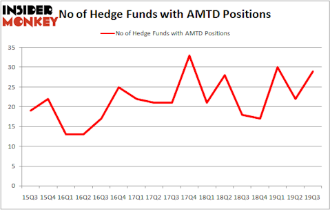 TD Ameritrade Holding Corporation (NYSE:AMTD) was in 29 hedge funds’ portfolios at the end of September. AMTD shareholders have witnessed an increase in enthusiasm from smart money in recent months. There were 22 hedge funds in our database with AMTD holdings at the end of the previous quarter. Our calculations also showed that AMTD isn’t among the 30 most popular stocks among hedge funds (click for Q3 rankings and see the video at the end of this article for Q2 rankings).