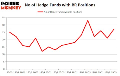Heading into the fourth quarter of 2019, a total of 27 of the hedge funds tracked by Insider Monkey were long this stock, a change of 29% from one quarter earlier. Below, you can check out the change in hedge fund sentiment towards BR over the last 17 quarters. So, let’s review which hedge funds were among the top holders of the stock and which hedge funds were making big moves.