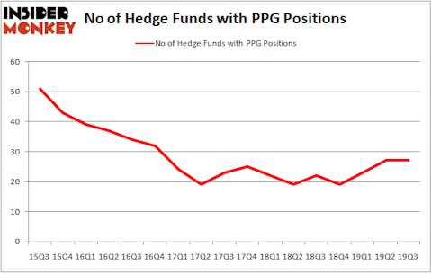 PPG Industries, Inc. (NYSE:PPG) shares haven’t seen a lot of action during the third quarter. Overall, hedge fund sentiment was unchanged. The stock was in 27 hedge funds’ portfolios at the end of the third quarter of 2019. At the end of this article we will also compare PPG to other stocks including Sirius XM Holdings Inc (NASDAQ:SIRI), TransDigm Group Incorporated (NYSE:TDG), and Republic Services, Inc. (NYSE:RSG) to get a better sense of its popularity.