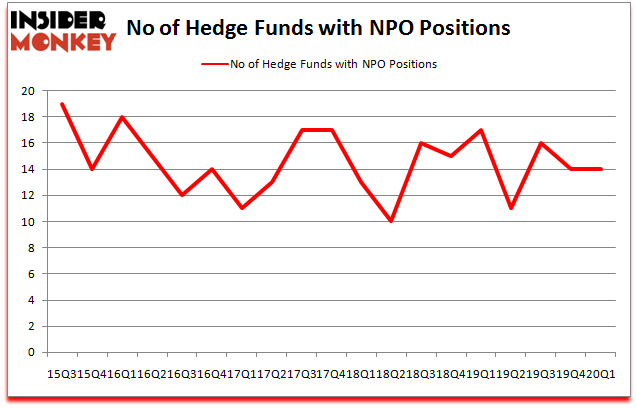 Heading into the second quarter of 2020, a total of 14 of the hedge funds tracked by Insider Monkey were long this stock, a change of 0% from the fourth quarter of 2019. By comparison, 17 hedge funds held shares or bullish call options in NPO a year ago. So, let’s examine which hedge funds were among the top holders of the stock and which hedge funds were making big moves.