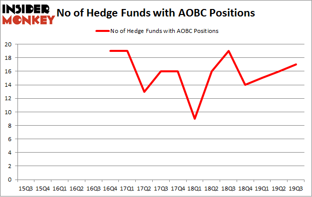 Heading into the fourth quarter of 2019, a total of 17 of the hedge funds tracked by Insider Monkey were long this stock, a change of 6% from the second quarter of 2019. Below, you can check out the change in hedge fund sentiment towards AOBC over the last 17 quarters. With the smart money’s sentiment swirling, there exists an “upper tier” of key hedge fund managers who were increasing their holdings significantly (or already accumulated large positions).