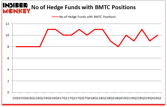 At Q1’s end, a total of 10 of the hedge funds tracked by Insider Monkey were long this stock, a change of 11% from one quarter earlier. On the other hand, there were a total of 10 hedge funds with a bullish position in BMTC a year ago. With hedgies’ capital changing hands, there exists a select group of notable hedge fund managers who were adding to their stakes meaningfully (or already accumulated large positions).