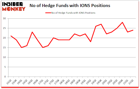 Is Ionis Pharmaceuticals, Inc. (NASDAQ:IONS) ready to rally soon? Money managers were in an optimistic mood. The number of bullish hedge fund positions moved up by 1 recently. Ionis Pharmaceuticals, Inc. (NASDAQ:IONS) was in 24 hedge funds’ portfolios at the end of the second quarter of 2021. The all time high for this statistic is 28. Our calculations also showed that IONS isn’t among the 30 most popular stocks among hedge funds (click for Q2 rankings). There were 23 hedge funds in our database with IONS holdings at the end of March.