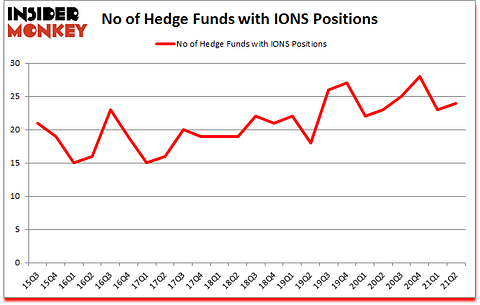 Is Ionis Pharmaceuticals, Inc. (NASDAQ:IONS) ready to rally soon? Money managers were in an optimistic mood. The number of bullish hedge fund positions moved up by 1 recently. Ionis Pharmaceuticals, Inc. (NASDAQ:IONS) was in 24 hedge funds’ portfolios at the end of the second quarter of 2021. The all time high for this statistic is 28. Our calculations also showed that IONS isn’t among the 30 most popular stocks among hedge funds (click for Q2 rankings). There were 23 hedge funds in our database with IONS holdings at the end of March.