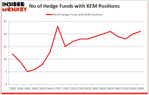 At the end of the fourth quarter, a total of 21 of the hedge funds tracked by Insider Monkey held long positions in this stock, a change of 5% from the previous quarter. The graph below displays the number of hedge funds with bullish position in KEM over the last 18 quarters. With the smart money’s capital changing hands, there exists a select group of notable hedge fund managers who were boosting their holdings meaningfully (or already accumulated large positions).