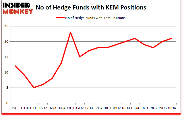 At the end of the fourth quarter, a total of 21 of the hedge funds tracked by Insider Monkey held long positions in this stock, a change of 5% from the previous quarter. The graph below displays the number of hedge funds with bullish position in KEM over the last 18 quarters. With the smart money’s capital changing hands, there exists a select group of notable hedge fund managers who were boosting their holdings meaningfully (or already accumulated large positions).