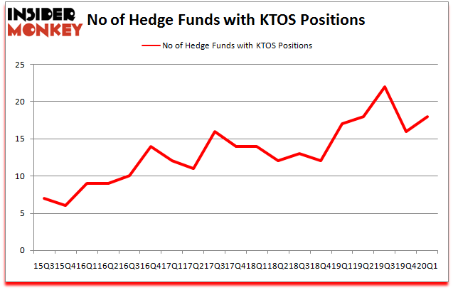 Kratos Defense & Security Solutions, Inc (NASDAQ:KTOS) was in 18 hedge funds’ portfolios at the end of March. KTOS has experienced an increase in hedge fund interest in recent months. There were 16 hedge funds in our database with KTOS positions at the end of the previous quarter. Our calculations also showed that KTOS isn’t among the 30 most popular stocks among hedge funds (click for Q1 rankings and see the video for a quick look at the top 5 stocks).