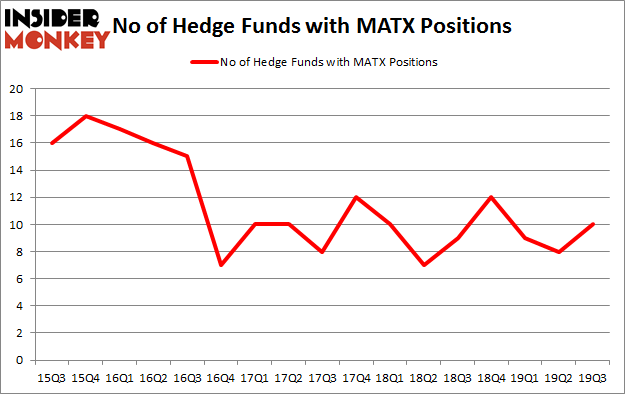 Heading into the fourth quarter of 2019, a total of 10 of the hedge funds tracked by Insider Monkey were bullish on this stock, a change of 25% from the previous quarter. Below, you can check out the change in hedge fund sentiment towards MATX over the last 17 quarters. With hedgies’ positions undergoing their usual ebb and flow, there exists a select group of notable hedge fund managers who were increasing their stakes considerably (or already accumulated large positions).