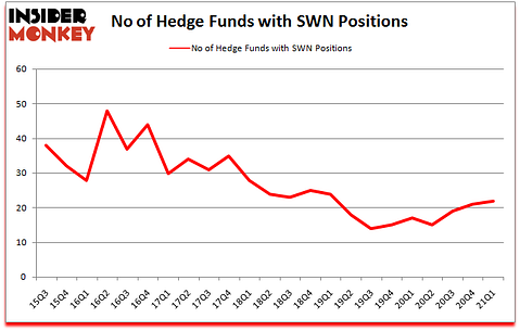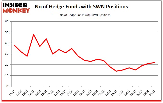 Southwestern Energy Company (NYSE:SWN) was in 22 hedge funds’ portfolios at the end of the first quarter of 2021. The all time high for this statistic is 48. SWN investors should pay attention to an increase in enthusiasm from smart money in recent months. There were 21 hedge funds in our database with SWN holdings at the end of December. Our calculations also showed that SWN isn’t among the 30 most popular stocks among hedge funds (click for Q1 rankings).