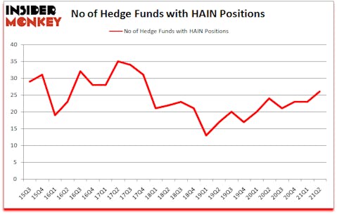 The Hain Celestial Group, Inc. (NASDAQ:HAIN) has seen an increase in activity from the world’s largest hedge funds in recent months. The Hain Celestial Group, Inc. (NASDAQ:HAIN) was in 26 hedge funds’ portfolios at the end of June. The all time high for this statistic is 35. There were 23 hedge funds in our database with HAIN positions at the end of the first quarter. Our calculations also showed that HAIN isn’t among the 30 most popular stocks among hedge funds (click for Q2 rankings).