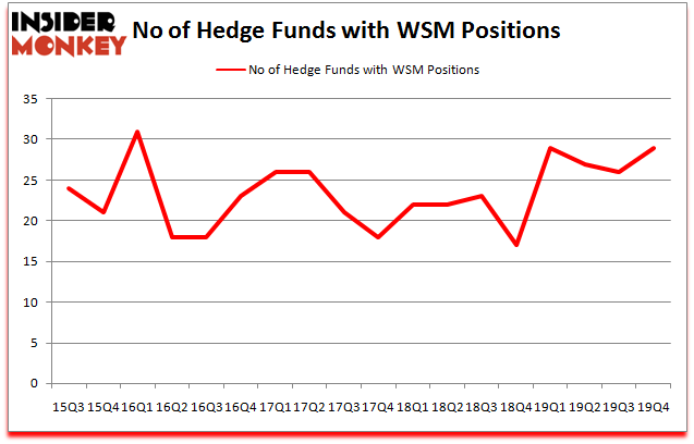 Williams-Sonoma, Inc. (NYSE:WSM) shareholders have witnessed an increase in activity from the world’s largest hedge funds of late. WSM was in 29 hedge funds’ portfolios at the end of the fourth quarter of 2019. There were 26 hedge funds in our database with WSM positions at the end of the previous quarter. Our calculations also showed that WSM isn’t among the 30 most popular stocks among hedge funds (click for Q4 rankings and see the video at the end of this article for Q3 rankings).