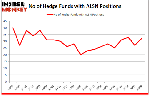 Allison Transmission Holdings Inc (NYSE:ALSN) investors should be aware of an increase in support from the world’s most elite money managers lately. Allison Transmission Holdings Inc (NYSE:ALSN) was in 32 hedge funds’ portfolios at the end of June. The all time high for this statistics is 40. There were 27 hedge funds in our database with ALSN positions at the end of the first quarter. Our calculations also showed that ALSN isn’t among the 30 most popular stocks among hedge funds (click for Q2 rankings and see the video for a quick look at the top 5 stocks).