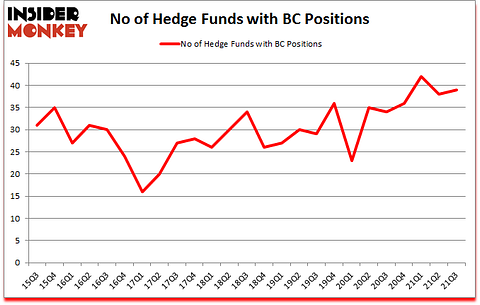 At Q3’s end, a total of 39 of the hedge funds tracked by Insider Monkey were bullish on this stock, a change of 3% from the previous quarter. Below, you can check out the change in hedge fund sentiment towards BC over the last 25 quarters. So, let’s find out which hedge funds were among the top holders of the stock and which hedge funds were making big moves.