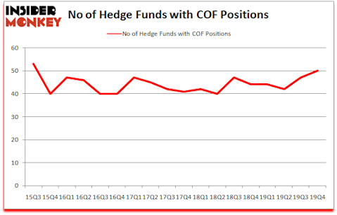 Heading into the first quarter of 2020, a total of 50 of the hedge funds tracked by Insider Monkey held long positions in this stock, a change of 6% from the previous quarter. The graph below displays the number of hedge funds with bullish position in COF over the last 18 quarters. With hedgies’ positions undergoing their usual ebb and flow, there exists a select group of key hedge fund managers who were boosting their stakes meaningfully (or already accumulated large positions).