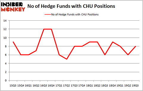At Q3’s end, a total of 8 of the hedge funds tracked by Insider Monkey were long this stock, a change of 33% from the second quarter of 2019. Below, you can check out the change in hedge fund sentiment towards CHU over the last 17 quarters. With hedgies’ capital changing hands, there exists an “upper tier” of notable hedge fund managers who were upping their holdings considerably (or already accumulated large positions).