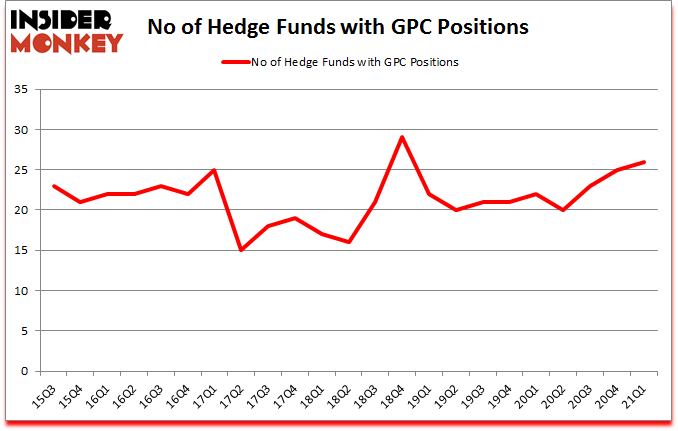 At Q1’s end, a total of 26 of the hedge funds tracked by Insider Monkey held long positions in this stock, a change of 4% from the fourth quarter of 2020. By comparison, 22 hedge funds held shares or bullish call options in GPC a year ago. With the smart money’s sentiment swirling, there exists a select group of key hedge fund managers who were increasing their stakes significantly (or already accumulated large positions).