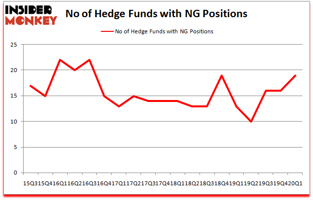 At the end of the first quarter, a total of 19 of the hedge funds tracked by Insider Monkey were bullish on this stock, a change of 19% from the previous quarter. Below, you can check out the change in hedge fund sentiment towards NG over the last 18 quarters. With the smart money’s positions undergoing their usual ebb and flow, there exists a select group of key hedge fund managers who were upping their holdings significantly (or already accumulated large positions).
