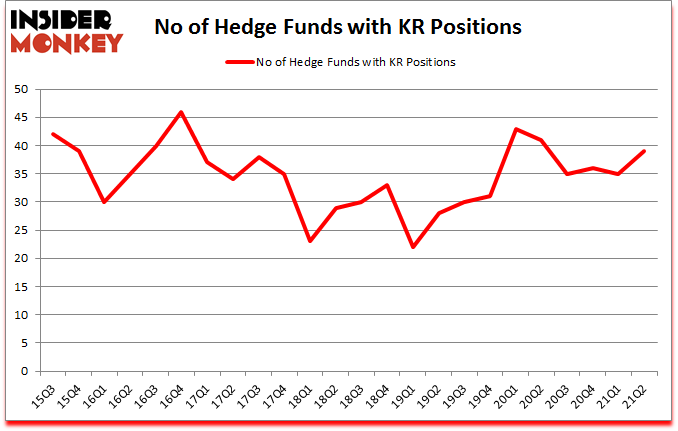 The Kroger Co. (NYSE:KR) was in 39 hedge funds’ portfolios at the end of the second quarter of 2021. The all time high for this statistic is 46. KR has seen an increase in enthusiasm from smart money recently. There were 35 hedge funds in our database with KR holdings at the end of March. Our calculations also showed that KR isn’t among the 30 most popular stocks among hedge funds (click for Q2 rankings).