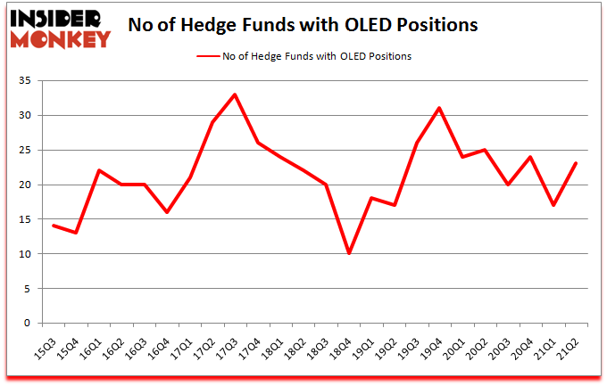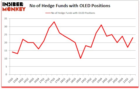 Universal Display Corporation (NASDAQ:OLED) was in 23 hedge funds’ portfolios at the end of the second quarter of 2021. The all time high for this statistic is 33. OLED investors should be aware of an increase in hedge fund interest in recent months. There were 17 hedge funds in our database with OLED holdings at the end of March. Our calculations also showed that OLED isn’t among the 30 most popular stocks among hedge funds (click for Q2 rankings).