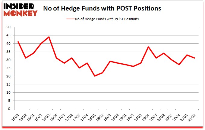 Post Holdings Inc (NYSE:POST) was in 31 hedge funds’ portfolios at the end of the second quarter of 2021. The all time high for this statistic is 44. POST has seen a decrease in activity from the world’s largest hedge funds recently. There were 33 hedge funds in our database with POST holdings at the end of March. Our calculations also showed that POST isn’t among the 30 most popular stocks among hedge funds (click for Q2 rankings).