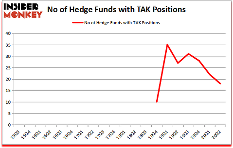 At Q2’s end, a total of 18 of the hedge funds tracked by Insider Monkey were bullish on this stock, a change of -18% from one quarter earlier. Below, you can check out the change in hedge fund sentiment towards TAK over the last 20 quarters. So, let’s examine which hedge funds were among the top holders of the stock and which hedge funds were making big moves.