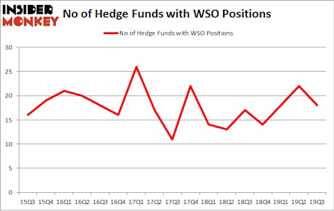 Heading into the fourth quarter of 2019, a total of 18 of the hedge funds tracked by Insider Monkey held long positions in this stock, a change of -18% from one quarter earlier. Below, you can check out the change in hedge fund sentiment towards WSO over the last 17 quarters. With hedgies’ positions undergoing their usual ebb and flow, there exists an “upper tier” of noteworthy hedge fund managers who were increasing their holdings substantially (or already accumulated large positions).